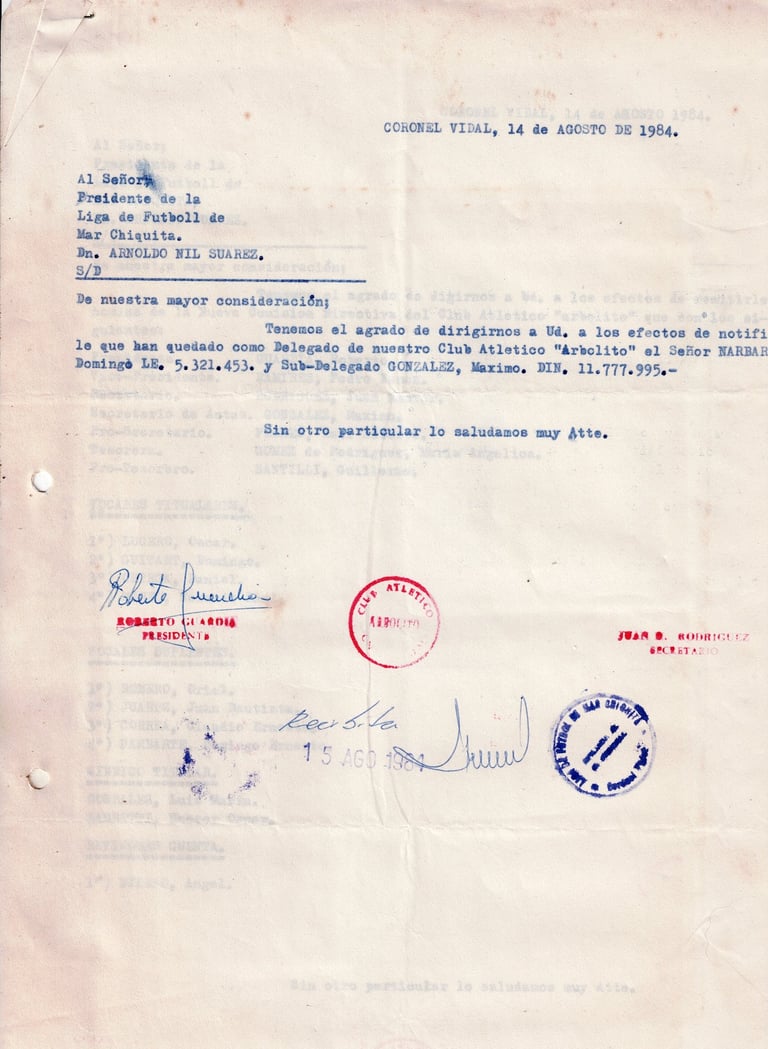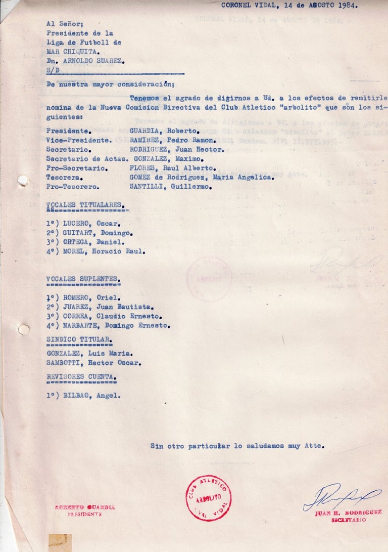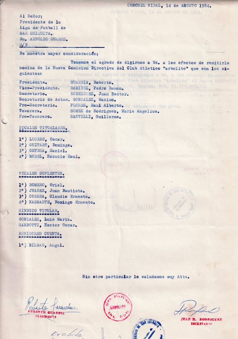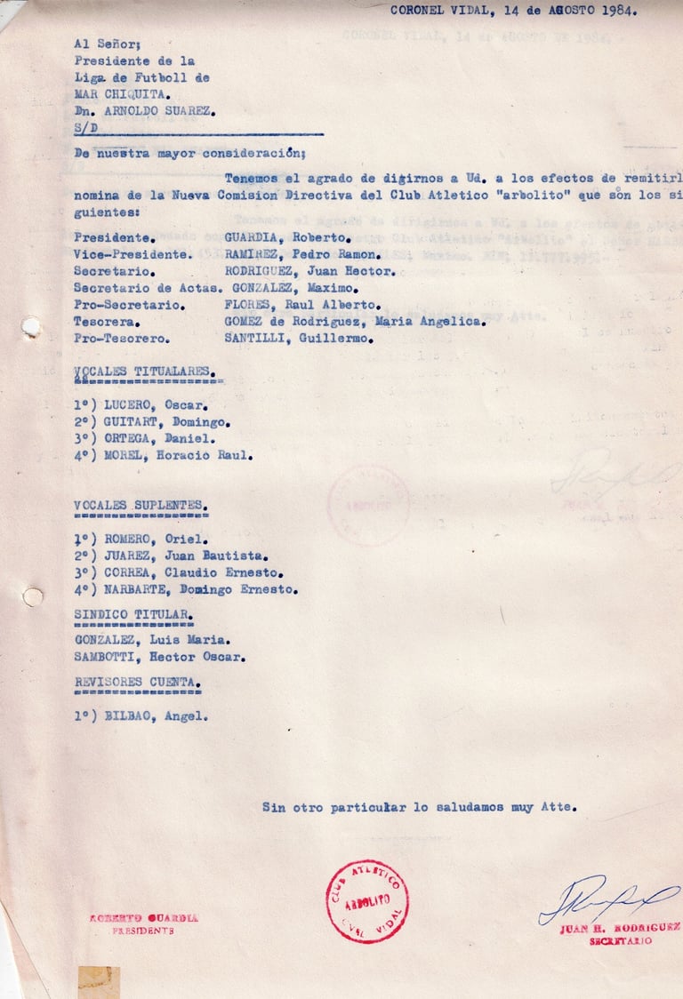 Desde 1950, Arbolito es el corazón deportivo y social de Coronel Vidal, uniendo generaciones con pasión y compromiso.Reseña Histórica del Club Atlético Arbolito
